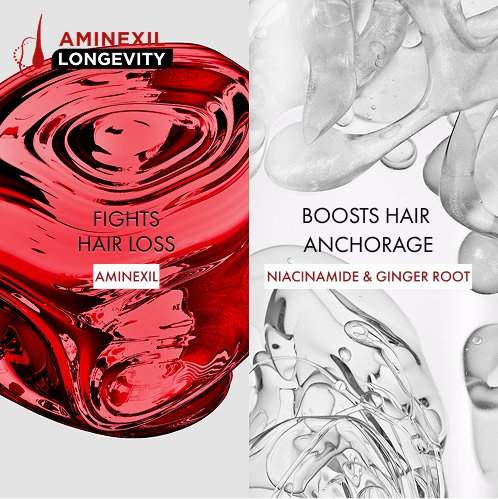 Innovativ teknologi mot periodisk hårtap. Basert på 30 års forskning. Konsentrert med 1,5% AMINEXIL & forsterket med 3% revitaliserende Essens med Ingefærekstrakt & Niacinamid, hjelper den dobbeltvirkende formelen med å minimere periodisk hårtap og støtter bedre hårkvalitet*.