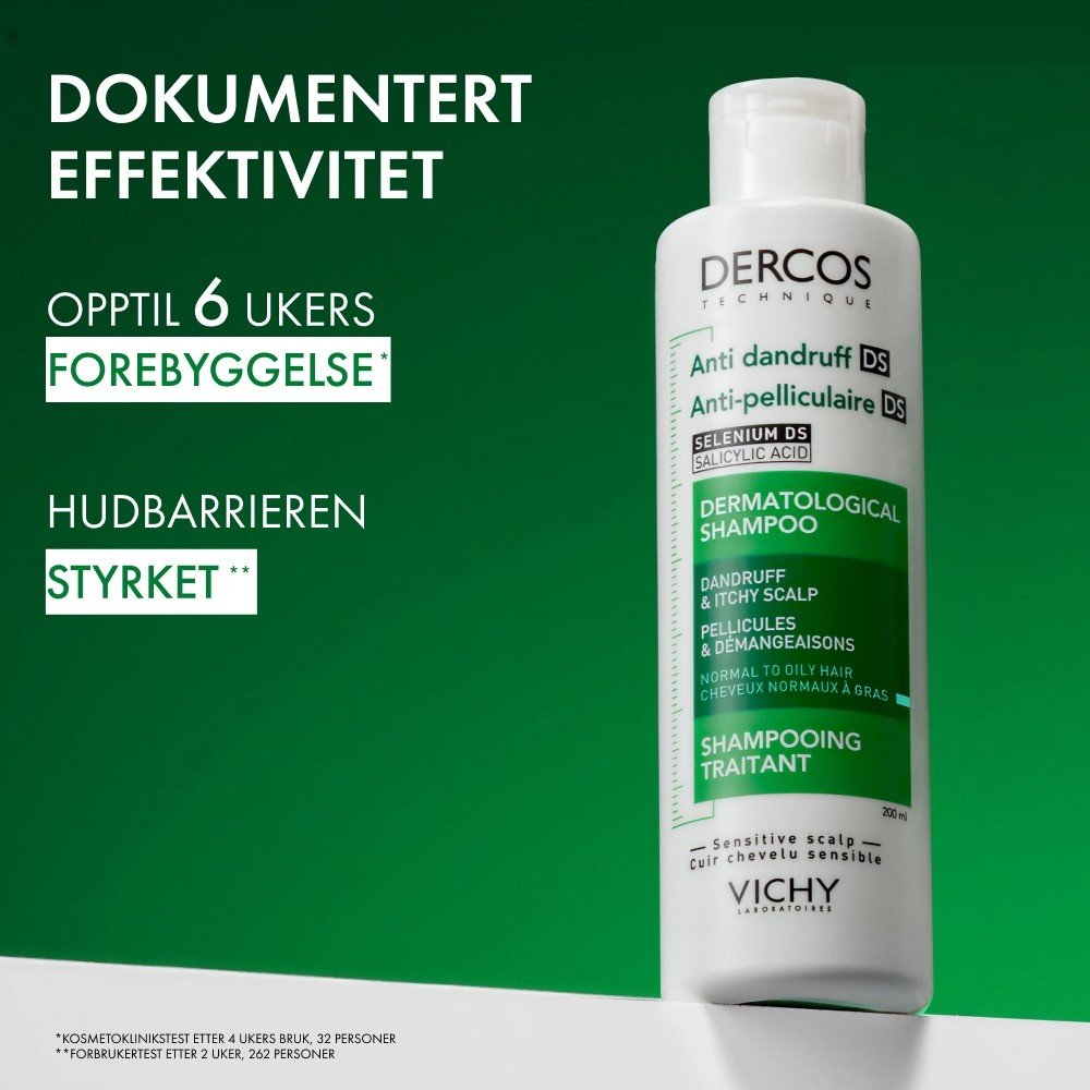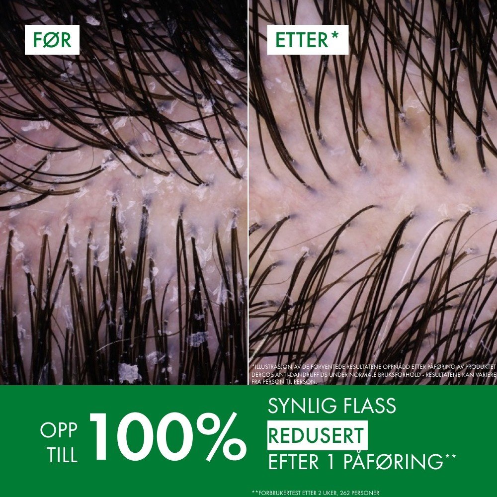 Påfør DERCOS Technique Flass-Sjampo i hodebunnen i vått hår. Massér forsiktig og la virke i 2 minutter. Skyll deretter ut. Anbefalt å brukes 2-3 ganger i uken i 4 uker, deretter 1 gang i uken for langsiktig vedlikehold.