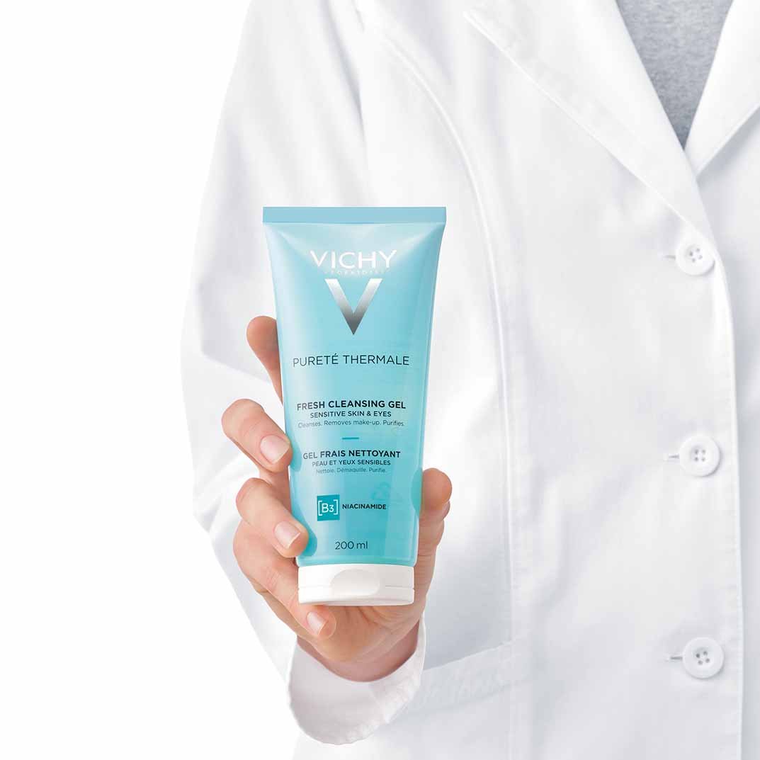 Vichy vulkansk vann, rik på 15 essensielle mineraler, styrker hudbarrieren.