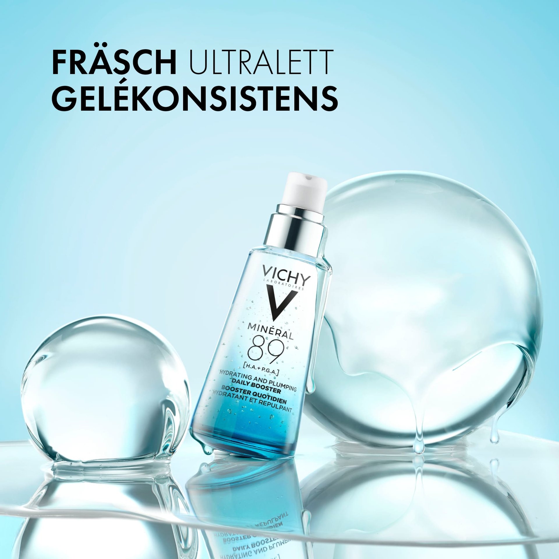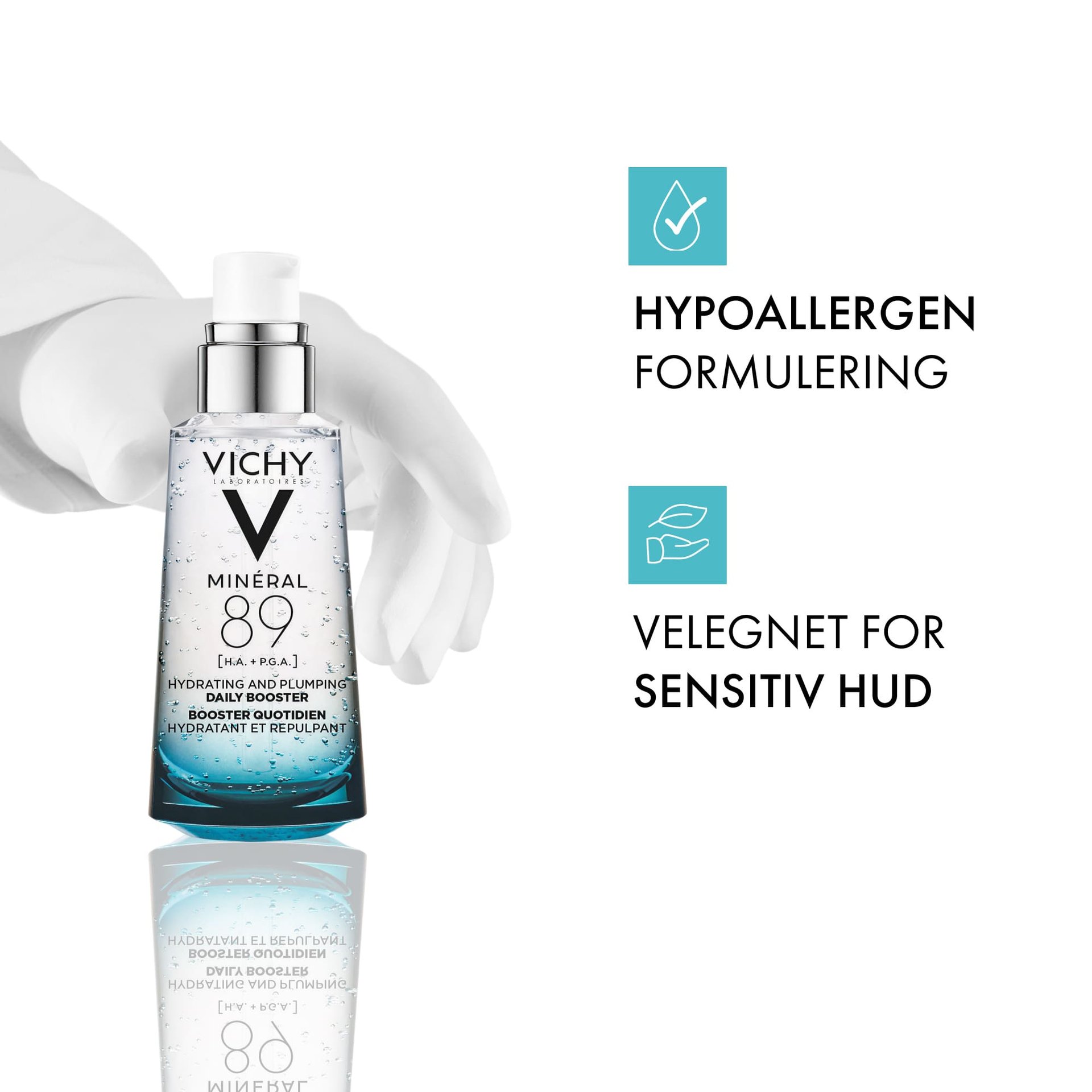 Påfør Minéral 89 på ren hud som det første trinnet i din daglige morgenrutine.