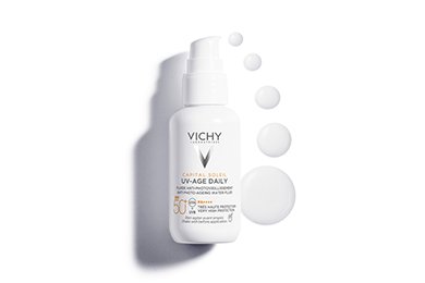 Vichy Capital Soleil UV-Age Daily SPF50+ er utviklet for sensitiv hud og er allergivennlig. Den er testet under dermatologisk kontroll og inneholder nøye utvalgte ingredienser, blant annet 2 % niacinamid som jevner ut hudtonen, 4 % peptider som motvirker aldring, 10 % Vichy vulkansk vann som styrker hudbarrieren, probiotiske fraksjoner som styrker hudbarrieren ytterligere og E-vitamin som er en kraftig antioksidant som nøytraliserer skadelige frie radikaler.